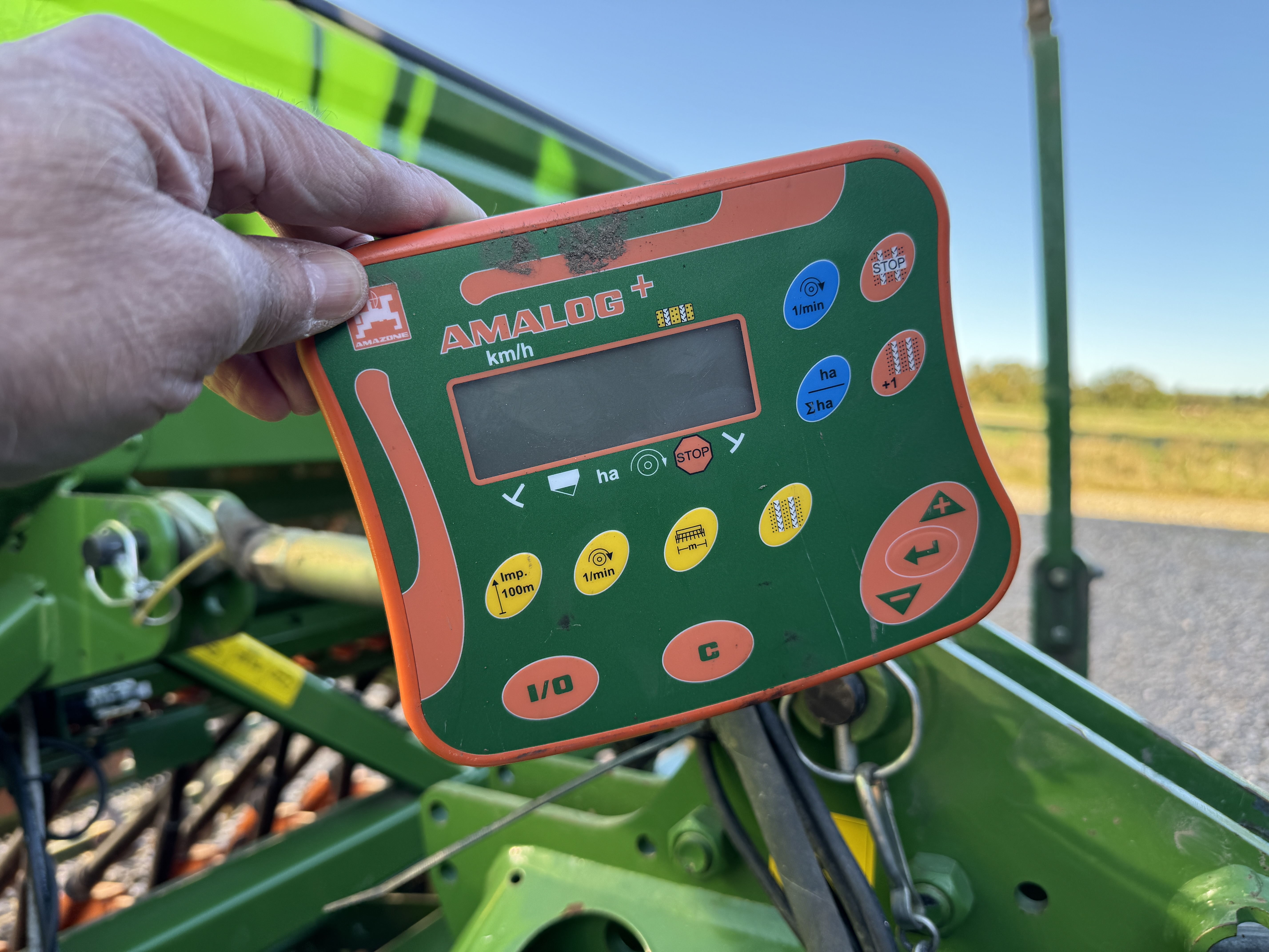 Meget velholdt Amazone rotorharvesæt bestående af KG super rotorgrubber med slæbeplanke, Killeringsvalse, monteret med AD super såmaskine med skiveskær, hydraulisk skæretryk, overbygning, hydraulisk markør, efterharve/strigle, sortjordsmarkør, Amalog computer, lys, ikke sået meget.
