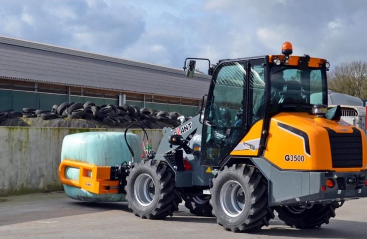 Giant G3500 X-tra HD - udstyret med bl.a. lukket kabine med varme og radio - luftsæde, trafiklys 4 cyl kubota motor 66 hk - brede hjul 480/45-17 AS skærmforøgere ekstra kontravægt - ekstra olieudtag - 175 cm skovl 100 cm pallegaffel løfter palle på 2400 kg